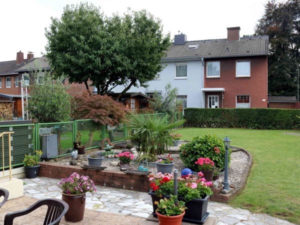 Das Badezimmer war ursprünglich kleiner und wurde um den Teil, in dem der WC-Sitz steht, vergrößert. Hierfür wurde die Wand zum Gäste-/ Kinderzimmer entfernt und durch eine Trockenbauwand ersetzt. Alle Wasseranschlüsse und Abflüsse wurden entsprechend neu verlegt.