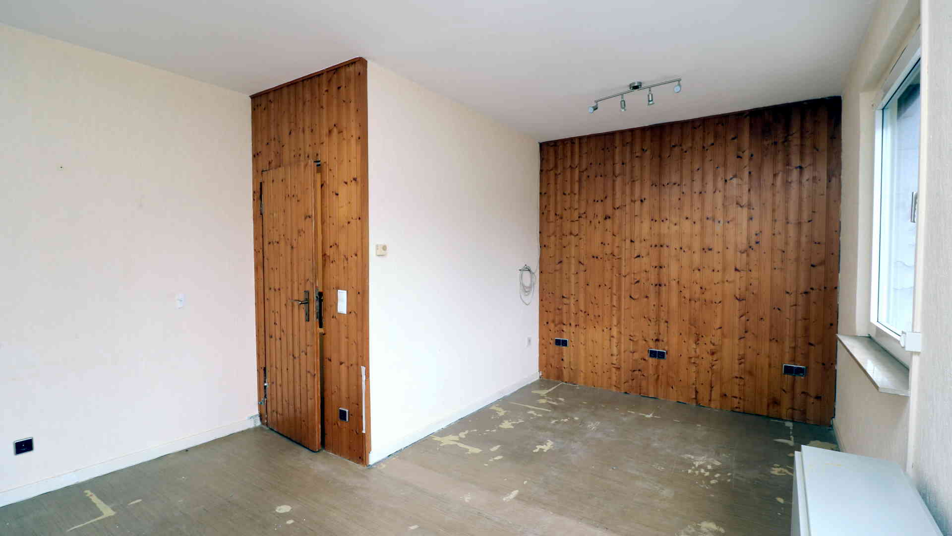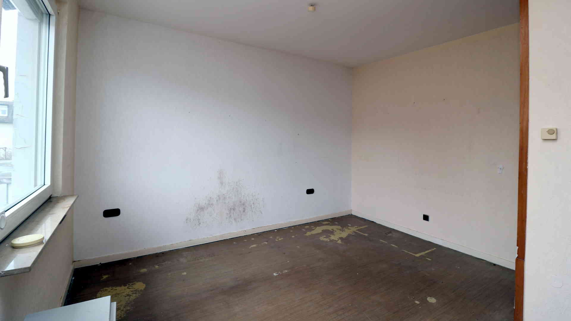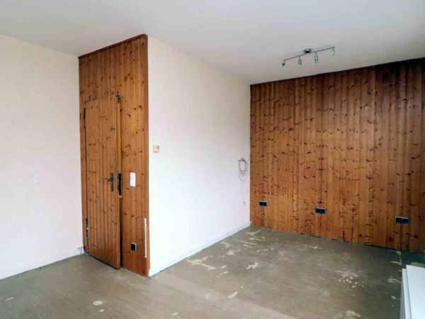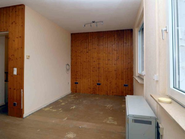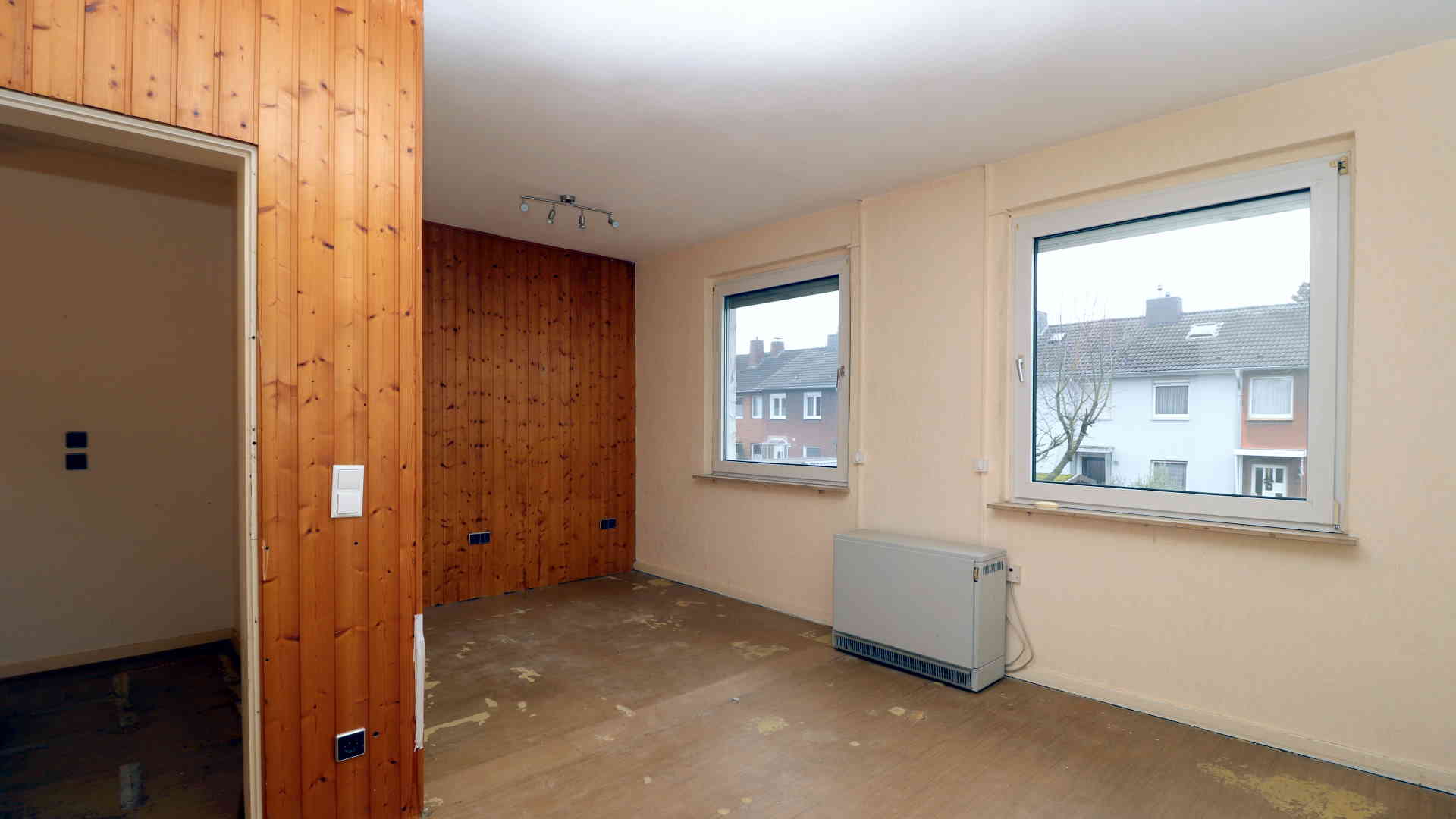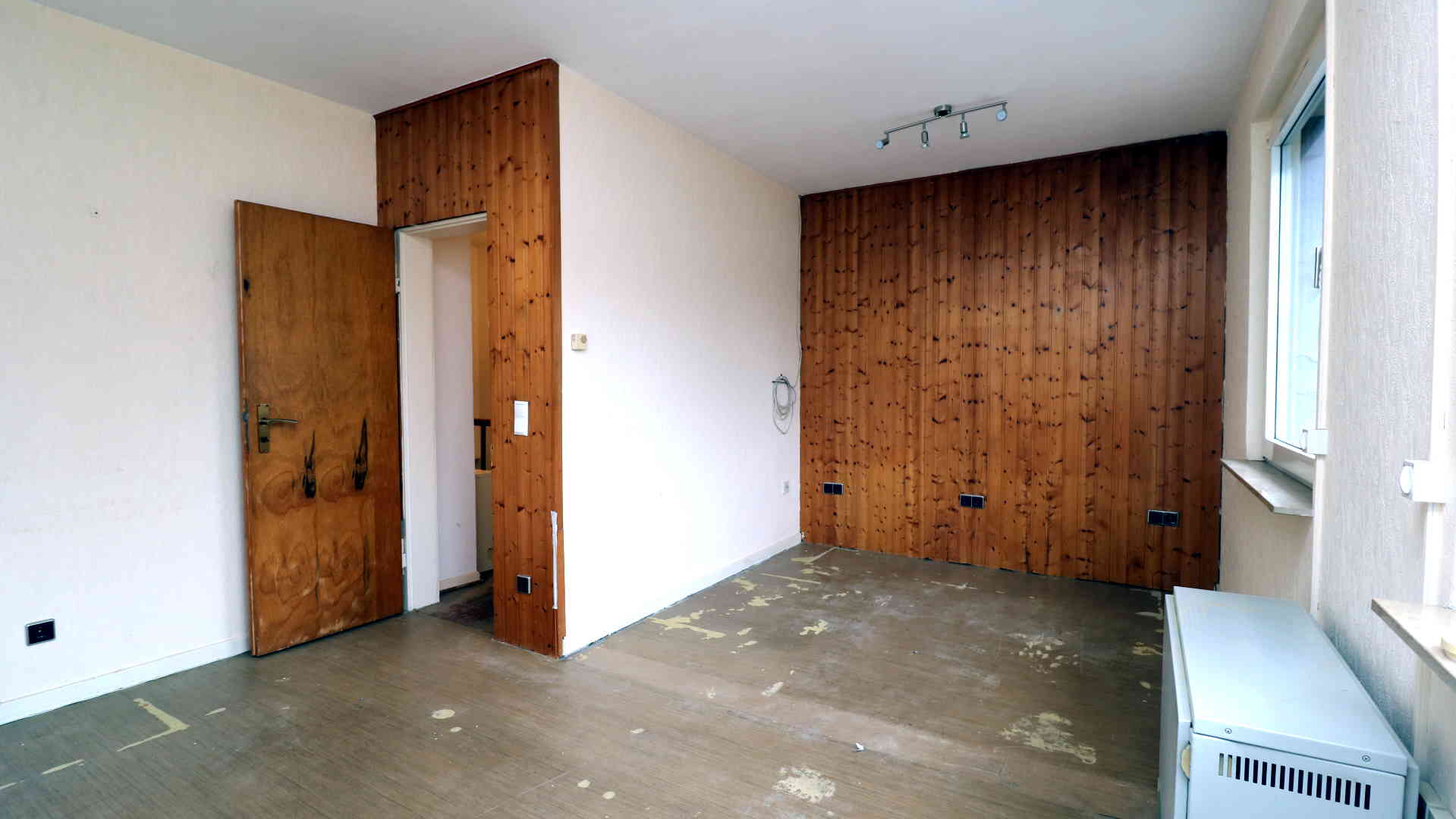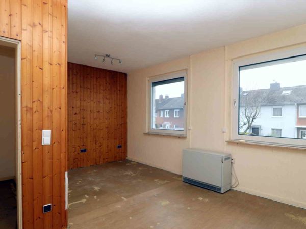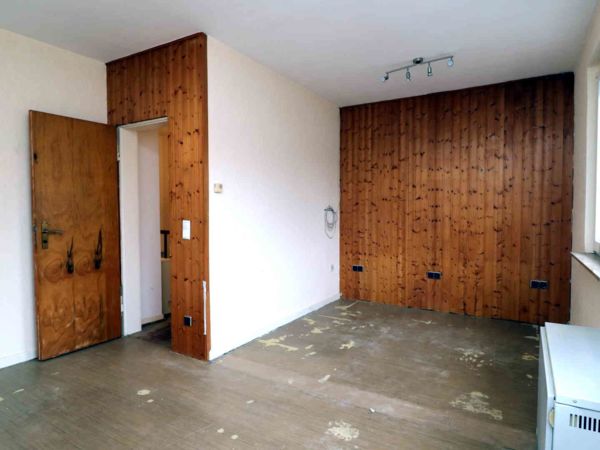 Das Schlafzimmer war ursprünglich kleiner und wurde später durch Zusammenlegung mit einem Nachbarraum zu einem großen Raum umgebaut.