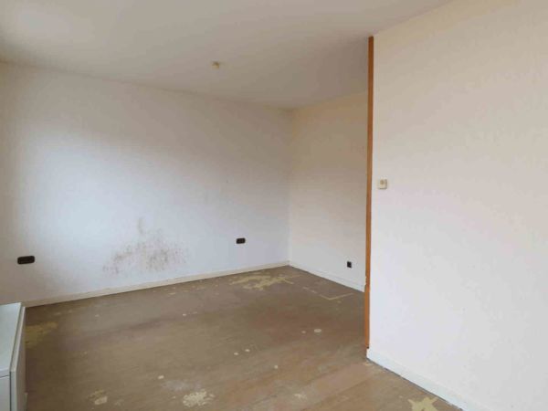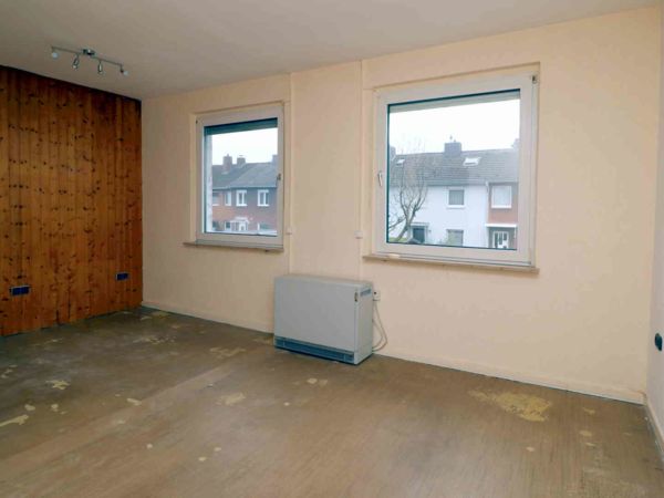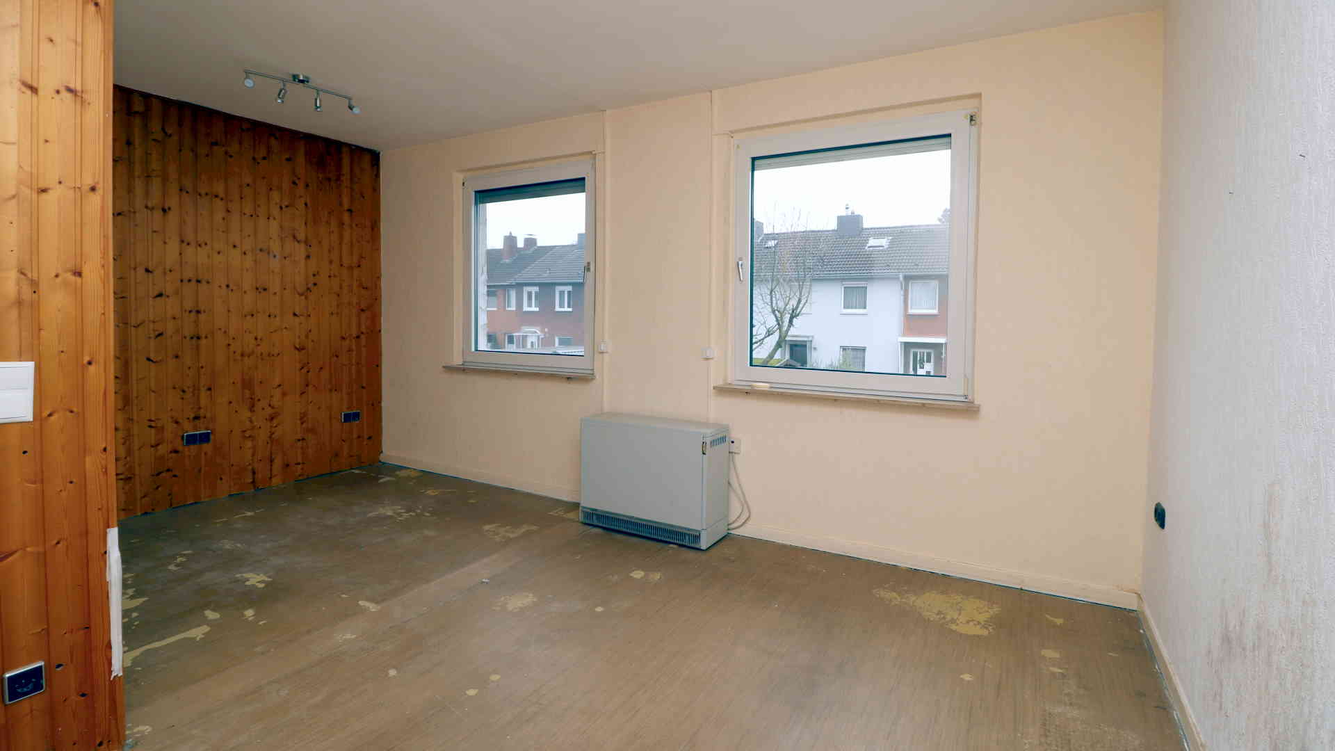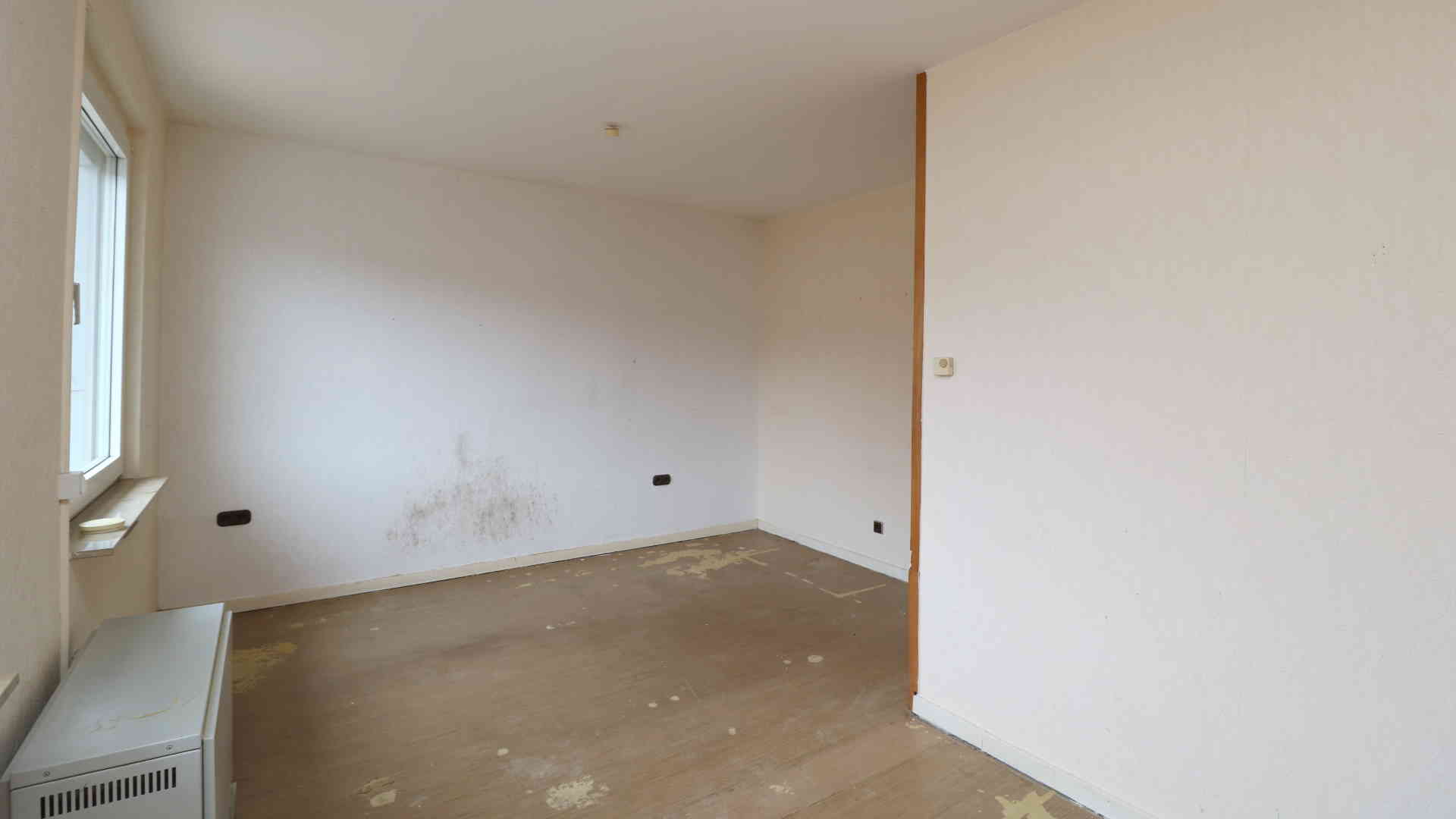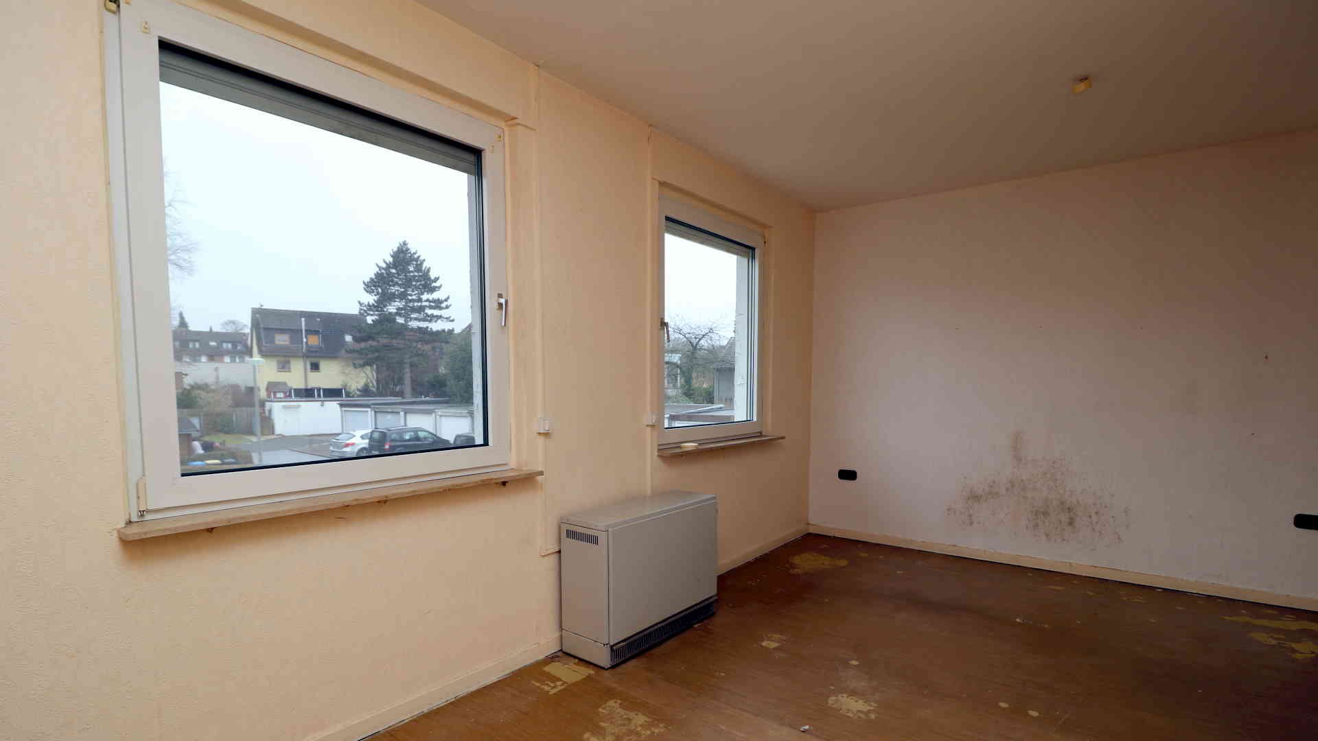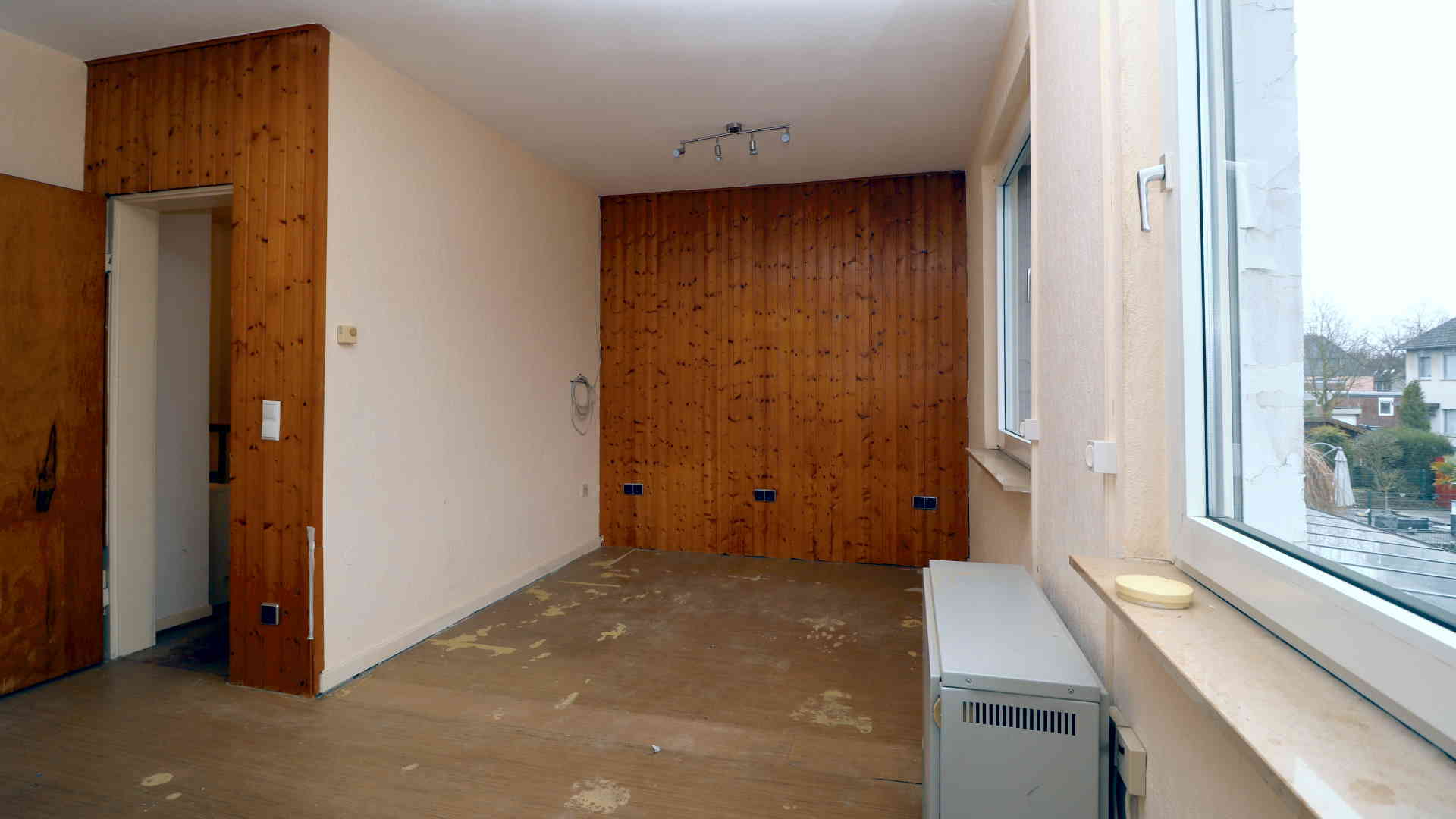 Das Schlafzimmer war ursprünglich kleiner und wurde später durch Zusammenlegung mit einem Nachbarraum zu einem großen Raum umgebaut.